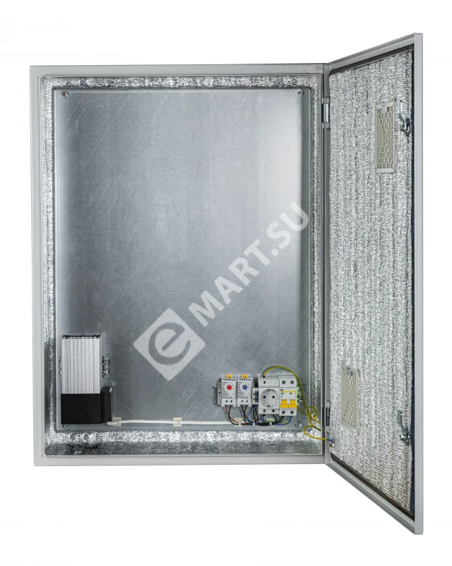 Климатический навесной шкаф Mastermann-5УТПВ-П+ (Ver. 2.0) IP 54 с вентиляторными решетками (пассивная вентиляция) и защитным реле от "холодного пуска". Предназначен для использования в любых климатических условиях на улице (-55°С +50°С)