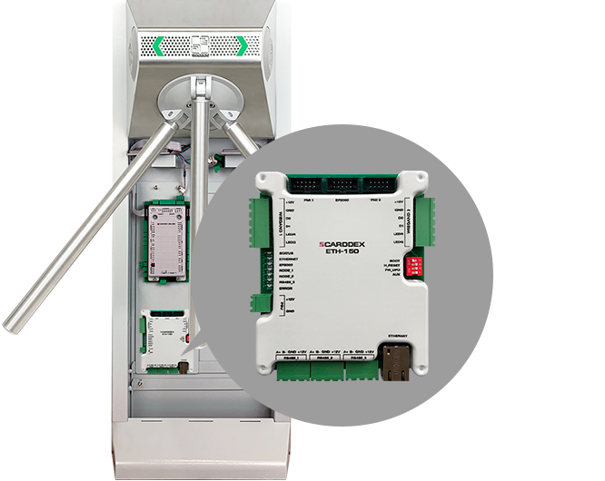 Модуль предназначен для организации обмена данными между турникетом и сервером СКУД CARDDEX «IMS» по сети, поддерживающей набор стандартов Ethernet. Наличие дополнительных интерфейсов передачи данных позволяет подключать к модулю широкий спектр периферийных устройств.