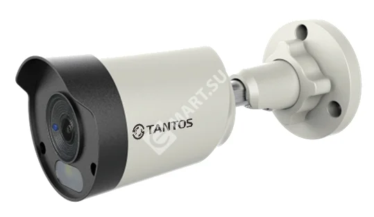 Tantos TSc-Pe5FN - уличная цилиндрическая универсальная видеокамера UVC (AHD, TVI, CVI, CVBS) с LED подсветкой белого цвета, пятимегапиксельная 2592х1944х20к/с, 1/2.7” CMOS сенсор c прогрессивным сканированием 0.01 Люкс, объектив 2.8 мм, белая LED подсветка до 20 метров, питание DC12В (до 300мА), материал корпуса пластик/метал, -40°С +60°С.