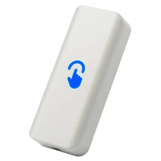 Кнопка выхода накладная сенсорная, пластиковая белого цвета. Подсветка. Коммутируемый ток - 3А. Питание 12-24В DC. Контакты: НО и НЗ. Температура эксплуатации: -20..+55С. Габаритные размеры: 80х32х23 мм.