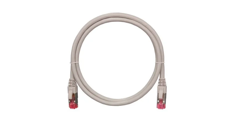 Коммутационный шнур NIKOMAX S/FTP 4 пары, Кат.6a (Класс Ea), 500МГц, 2хRJ45/8P8C, T568B, заливной, с защитой защелки, многожильный, BC (чистая медь), 26AWG (7х0,165мм), PVC нг(А), серый, 2м