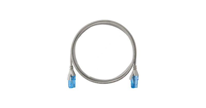 Коммутационный шнур NIKOMAX Slim Line U/UTP 4 пары, Кат.6 (Класс E), 250МГц, 2хRJ45/8P8C, T568B, заливной, с защитой защелки, многожильный, BC (чистая медь), 28AWG (7х0,127мм), LSZH нг(А)-HFLTx, серый, 5м