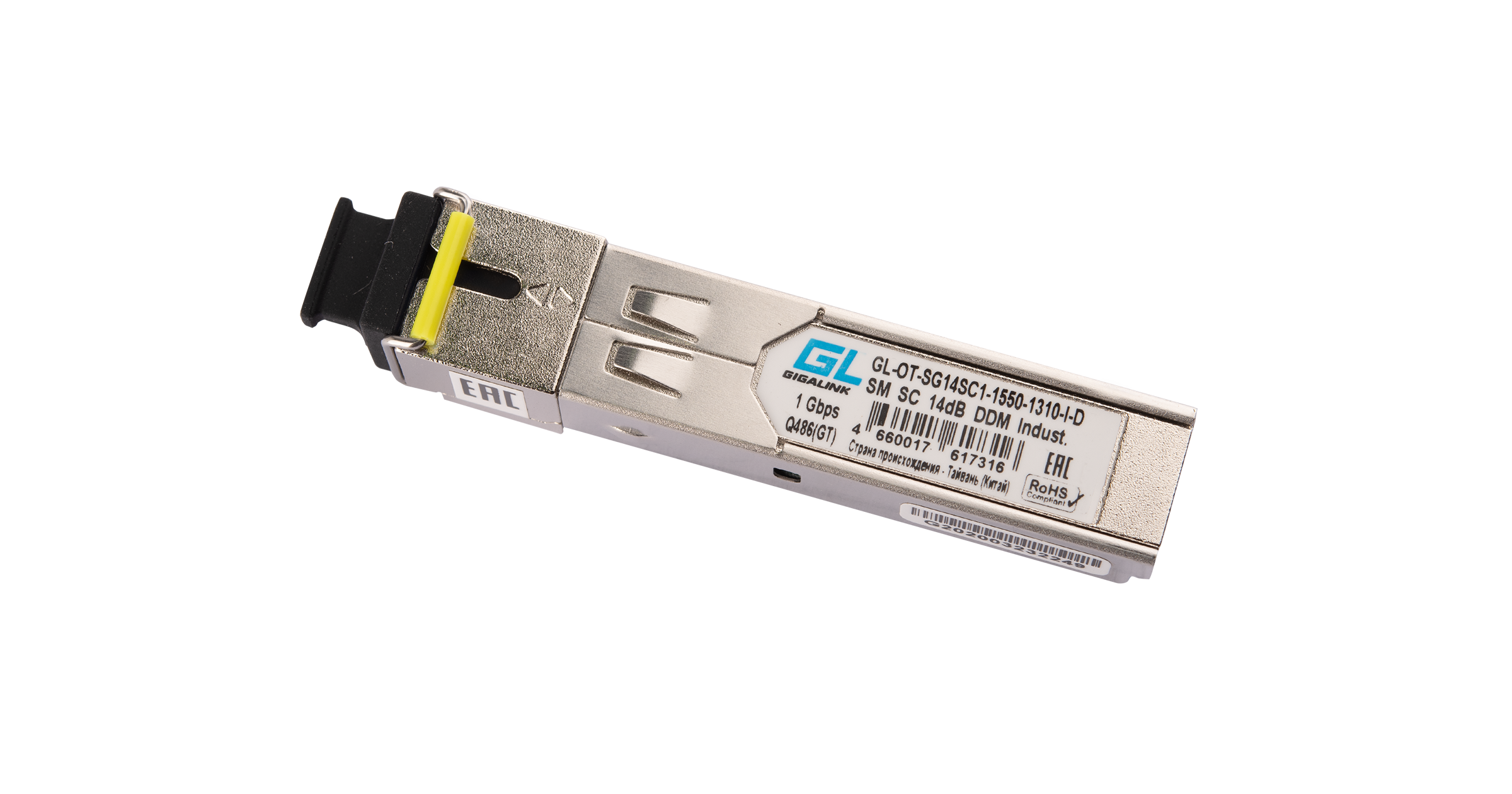Модуль NIKOMAX SFP, 1.25 Гбит/с, WDM, 1 ОВ, SM, 1xSC, Tx:1550/Rx:1310 нм, DDM, 14 дБ (до 20 км), -40 +85 °С