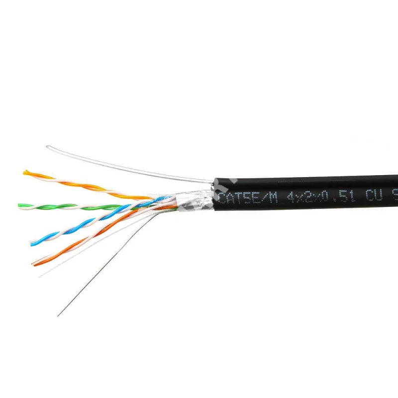 Кабель Skynet Premium FTP4 cat.5е, одножильный, 305м, Cu, Проходит Fluke тест, для наружных работ, с тросом, черный