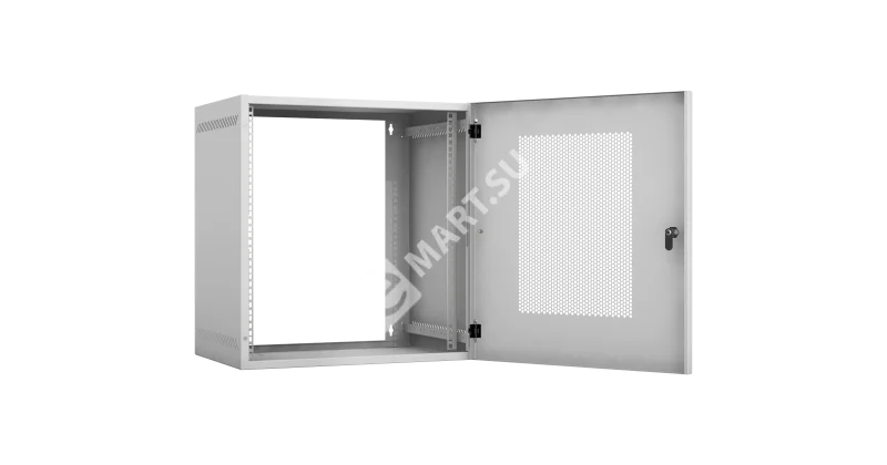 Настенный шкаф 19", 12U, перфорированная дверь, Ш540хВ573хГ400мм, 1 пара монтажных направляющих, сварной, серый